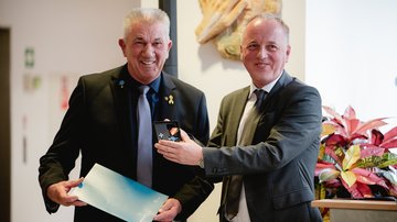 Ausgezeichnet wurde er nun für sein Engagement, welches weit über seine hauptamtliche Tätigkeit beim Volksbund hinaus geht. So organisierte er über zehn Jahre internationale Jugendworkcamps für den Volksbund in den Sommerferien. Er begleitete dabei Jugendliche aus verschiedenen Nationen, die zum einen Kriegsgräberstätten pflegten und sich zum anderen mit Geschichte auseinandersetzten. Versöhnung und Verständigung über den Gräbern der Toten der beiden letzten Weltkriege.