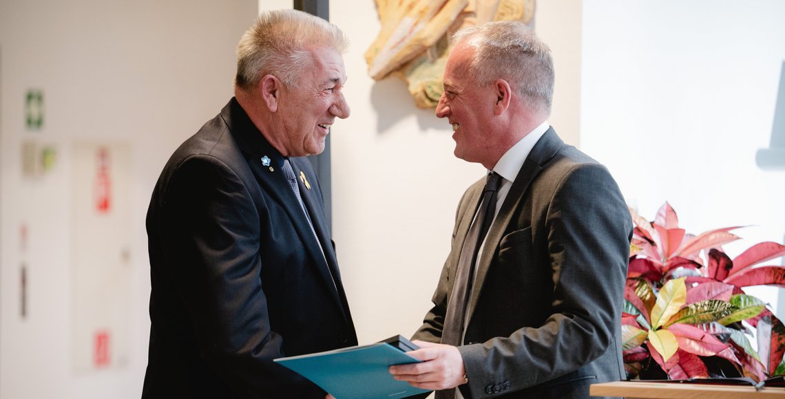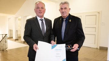 Am 14. Februar 2024 wurde Herrn Bodo Henze das silberne Ehrenkreuz des Volksbundes Deutsche Kriegsgräberfürsorge e. V. verliehen. Der Landesvorsitzende des Volksbundes in Sachsen-Anhalt, Herr Rüdiger Erben, MdL, übergab die Auszeichnung im Rahmen der jährlichen Dankveranstaltung im Magdeburger Landtag für Spendensammler und Teilnehmer an Pflegeeinsätzen durch die Bundeswehr und die Reservisten für die Kriegsgräberfürsorge.
