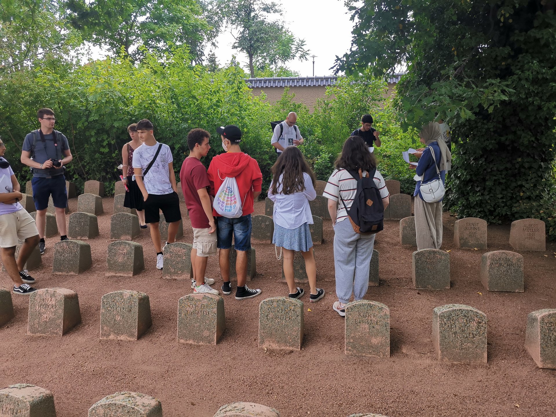 Das Programm der internationalen Jugendbegegnung stand ganz unter dem Motto „Have rights, get rights“. Heute nehmen wir die Menschrechte für selbstverständlich. Doch die Teilnehmenden haben in verschiedenen Workshops erfahren, wie viele grundlegende Rechte in den deutschen Diktaturen missachtet wurden. In diesem Jahr standen dabei die Besuche der Gedenkstätte „Roter Ochse“ in Halle (Saale) und des Dokumentations- und Informationszentrums in Torgau im Mittelpunkt. An beiden Orten kann nachvollzogen werden, welche Auswirkungen das gleichgeschaltete Justizsystem während der Zeit des Nationalsozialismus‘, und dadurch die Abschaffung des Rechts auf einen fairen Gerichtsprozess, hatten. Im Mittelpunkt stand dabei sowohl in Halle als auch in Torgau die Auseinandersetzung mit Einzelschicksalen. Sie zeigen auf, dass die im nationalsozialistischen Justizsystem zu Tode gekommenen nicht nur Nummern waren, sondern Menschen mit eigener Geschichte und Familie. In Torgau haben die Teilnehmenden am Grab eines Zwangsarbeiters, mit dessen Biografie sie sich beschäftigten, Blumen niedergelegt und eine kleine Gedenkzeremonie abgehalten. In Halle haben sich die jungen Forscher bei einer Führung zu den verschiedenen Kriegsgräberstätten des Gertraudenfriedhofs sowie auf dem Stadtgottesacker in Halle gegenseitig die Biografien mehrerer im „Roten Ochsen“ hingerichteter und dort begrabener Menschen vorgestellt.