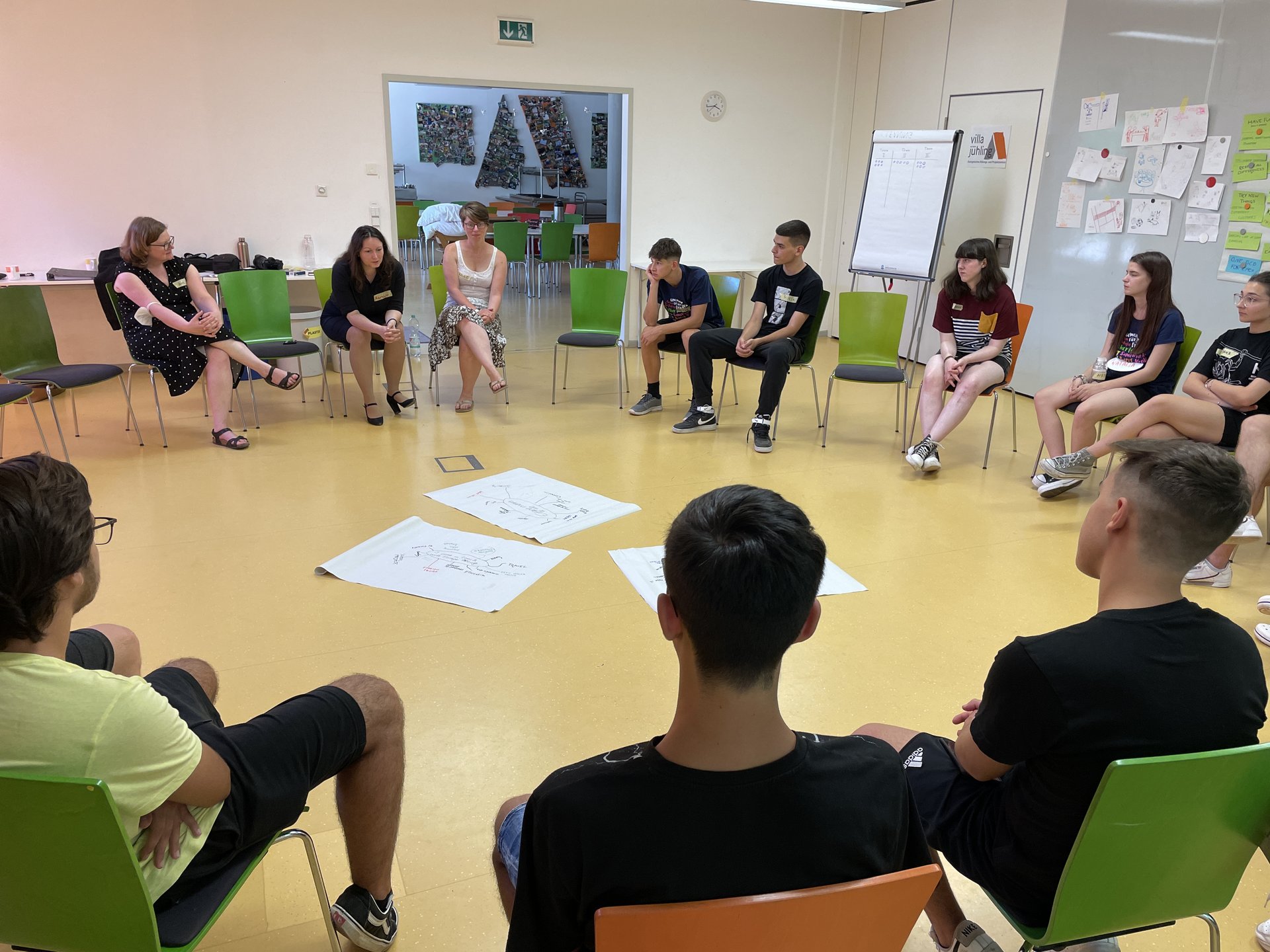 Dort fand auch bereits am ersten Tag der Jugendbegegnung ein Highlight statt: Die für Sachsen-Anhalt zuständige Europaabgeordnete der EVP-Fraktion, Karolin Braunsberger-Reinhold, kam auf einen Besuch vorbei und stellte sich dabei den Fragen der Teilnehmenden: Was macht eine Europaabgeordnete eigentlich genau? Wie sieht die Zukunft der Europäischen Union aus? Wie beeinflusst der Krieg in der Ukraine ihre Arbeit?