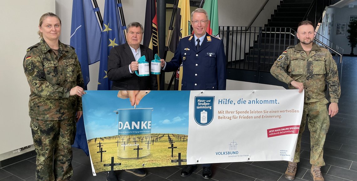 Mit dem gemeinsamen Aufruf verbinden der Kommandeur Oberst Bernd Albers und der Volksbund-Landesvorsitzende Herr Dieter Steinecke die Hoffnung, dass die traditionelle Haus- und Straßensammlung wieder zu guten Ergebnissen führt und die Arbeit des Volksbundes fortgesetzt werden kann.