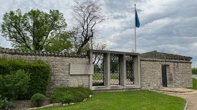Am 14. April 2024 begann unsere Reise von Sommerhausen in Franken in Richtung Lyon. Wir waren sehr gespannt darauf was uns erwartet. Am 15.4.2024 war es dann so weit, dass wir zum Soldatenfriedhof gefahren sind. Etwas aufgeregt und mulmig sind wir auf den Parkplatz gefahren und haben unser Auto abgestellt. Das Wetter meinte es gut mit uns, denn die Sonne schien prächtig. Mit einer gewissen Beklommenheit sind wir durch das Eingangstor gegangen und haben die vielen Grabsteine gesehen. Zunächst gingen wir in den Eingangsraum, um uns ein bisschen zu sammeln. Außerdem schauten wir nochmal in die ausgelegten Namenbücher, wo unser Opa stand.