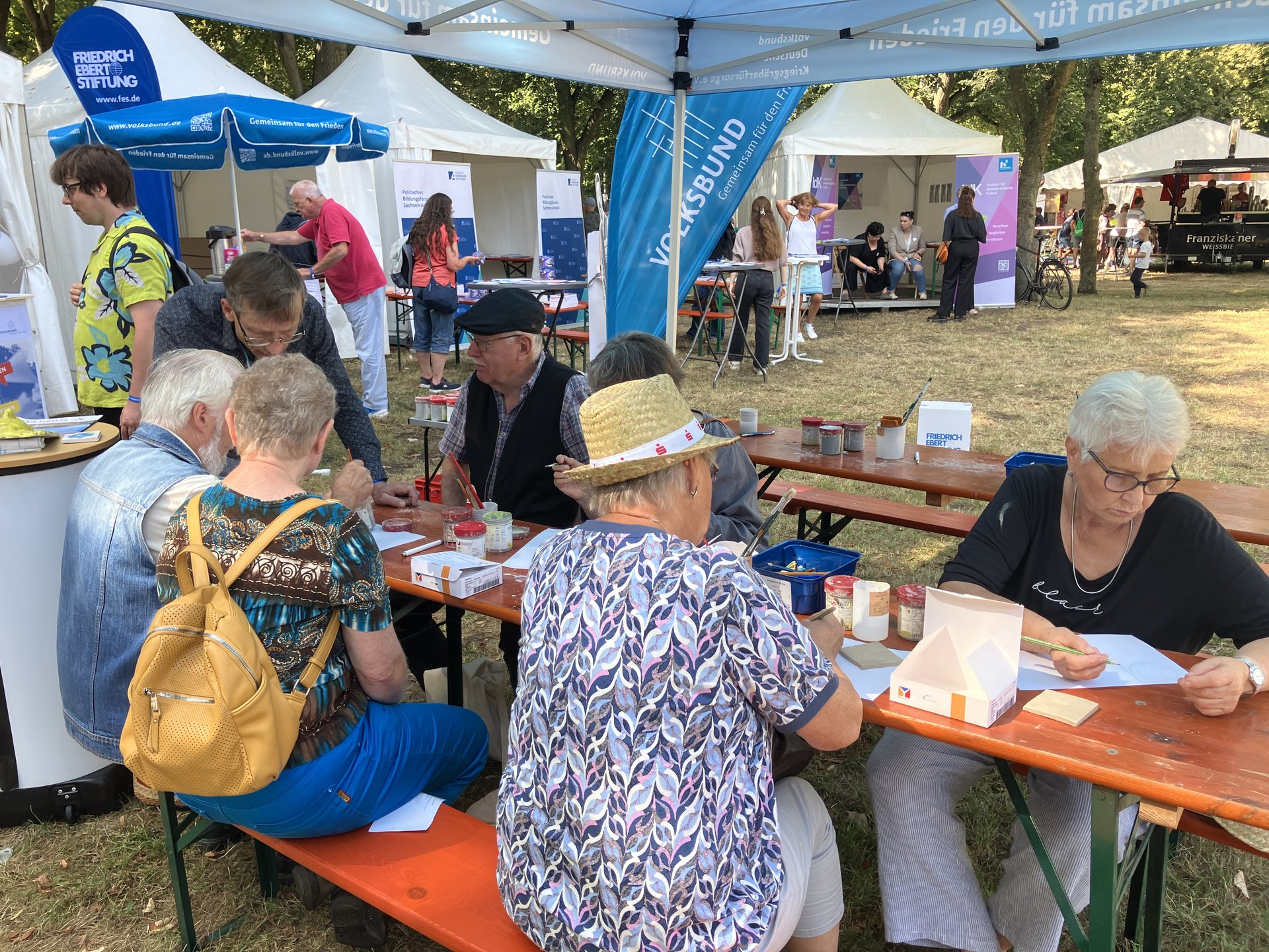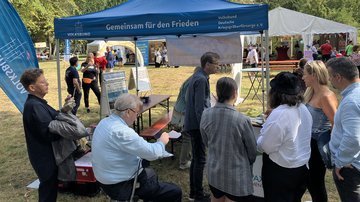 Nicht zuletzt durch die hilfreiche Unterstützung von Niklas und Martin, die den Landesverband schon seit vielen Jahren unterstützen, war es wieder möglich, zahlreiche interessante Gespräche zu führen und so die (Bildungs-)Arbeit des Volksbundes in den Fokus zu rücken.