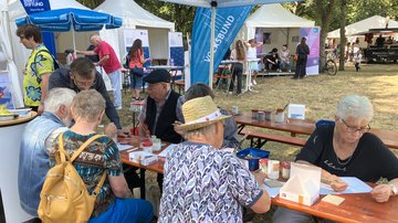 Im Zeitraum vom 30. August bis zum 1. September 2024 präsentierten sich zahlreiche Akteure – von der „Blaulichtmeile“ über die Landkreise/Regionen und zahlreichen weiteren. Auch der Volksbund Deutsche Kriegsgräberfürsorge präsentierte sich mit seinem Stand auf der Themenstraße „Weltoffenes Sachsen-Anhalt“ und informierte über seine Arbeit. Am Samstag und am Sonntag wurden zusätzlich in Zusammenarbeit mit der Deutsch-Slowakischen-Gesellschaft Sachsen-Anhalt Workshops im Rahmen des Projekts “Floris Pax” angeboten. Insgesamt wurden 100 Friedenskacheln mit individuellen Friedensnachrichten der Teilnehmenden gestaltet, welche ihren Eingang in ein großes Friedensdenkmal im Magdeburger Elbauenpark finden werden.
