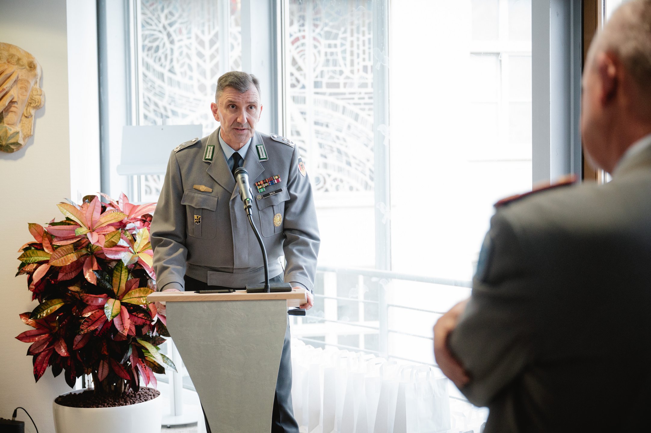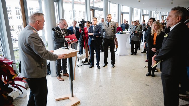 Vom Standort Weißenfels, wo durch die Soldatinnen und Soldaten, sowie zivile Beschäftigte im besonderen Maß zum Rekordsammelergebnis beigetragen haben, sprach Generalarzt Dr. Bruno Most zu den Anwesenden.