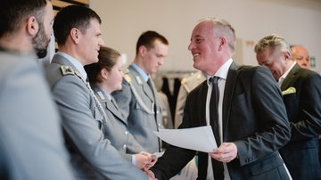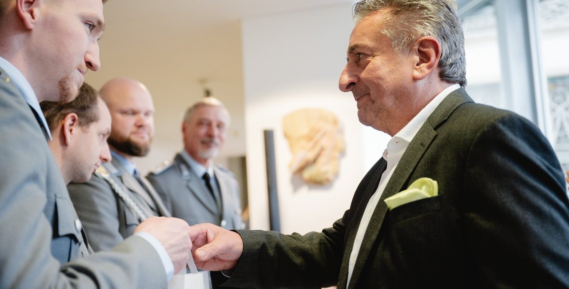 Landtagspräsident Dr. Gunnar Schellenberger betonte die Bedeutung des Engagements bei der Sammlung für die Kriegsgräberfürsorge durch Soldatinnen und Soldaten. „Es gibt nur ein Wort dazu und dies sei heute auch Grund dieses Treffens: DANKE! Danke, Ihnen allen für ihren freiwilligen Einsatz.“